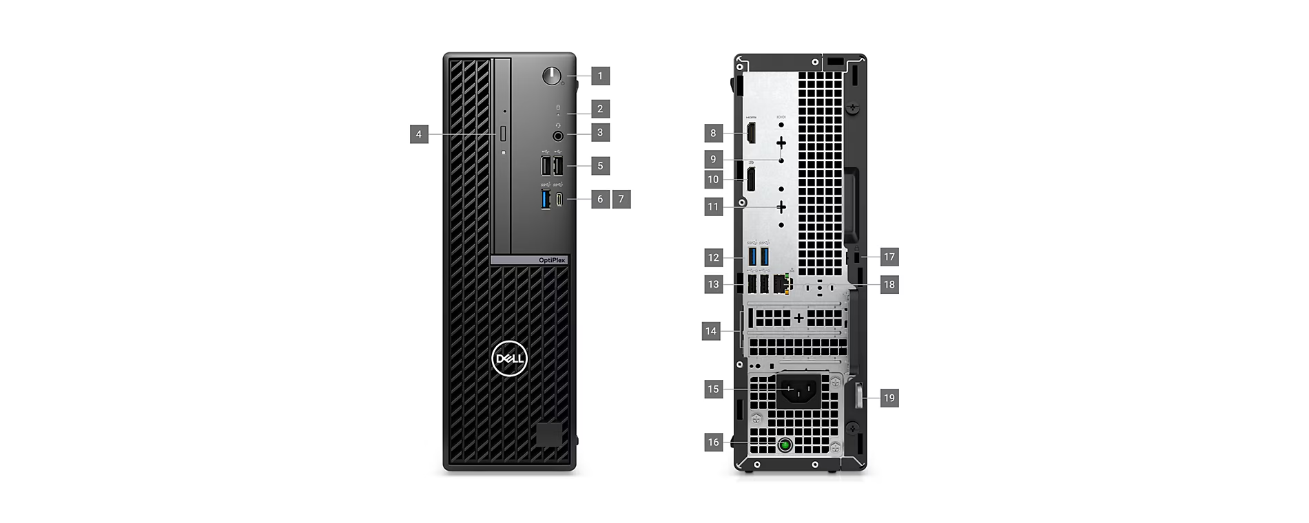 Diseñado para ofrecer opciones de rendimiento flexibles en el espacio más reducido posible, el OptiPlex Small Form Factor ofrece una solución de escritorio despejado y, al mismo tiempo, es altamente expandible sin comprometer las opciones de puertos. Estas son las diferencias clave: