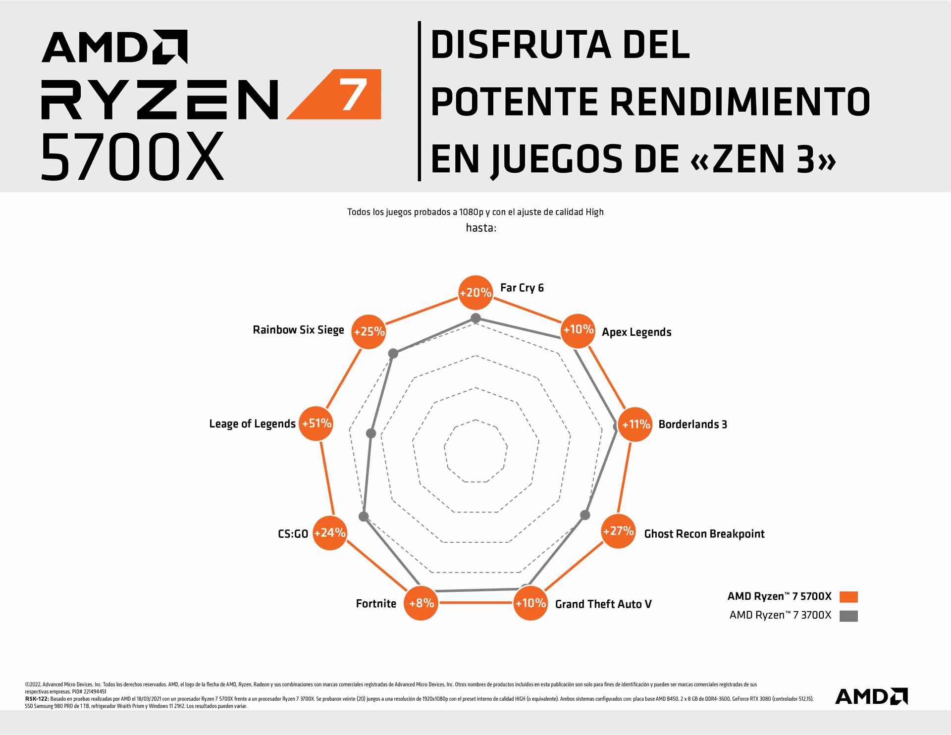 RZ-5700XBXProcesador AMD Ryzen 7 5700X 3.4GHz