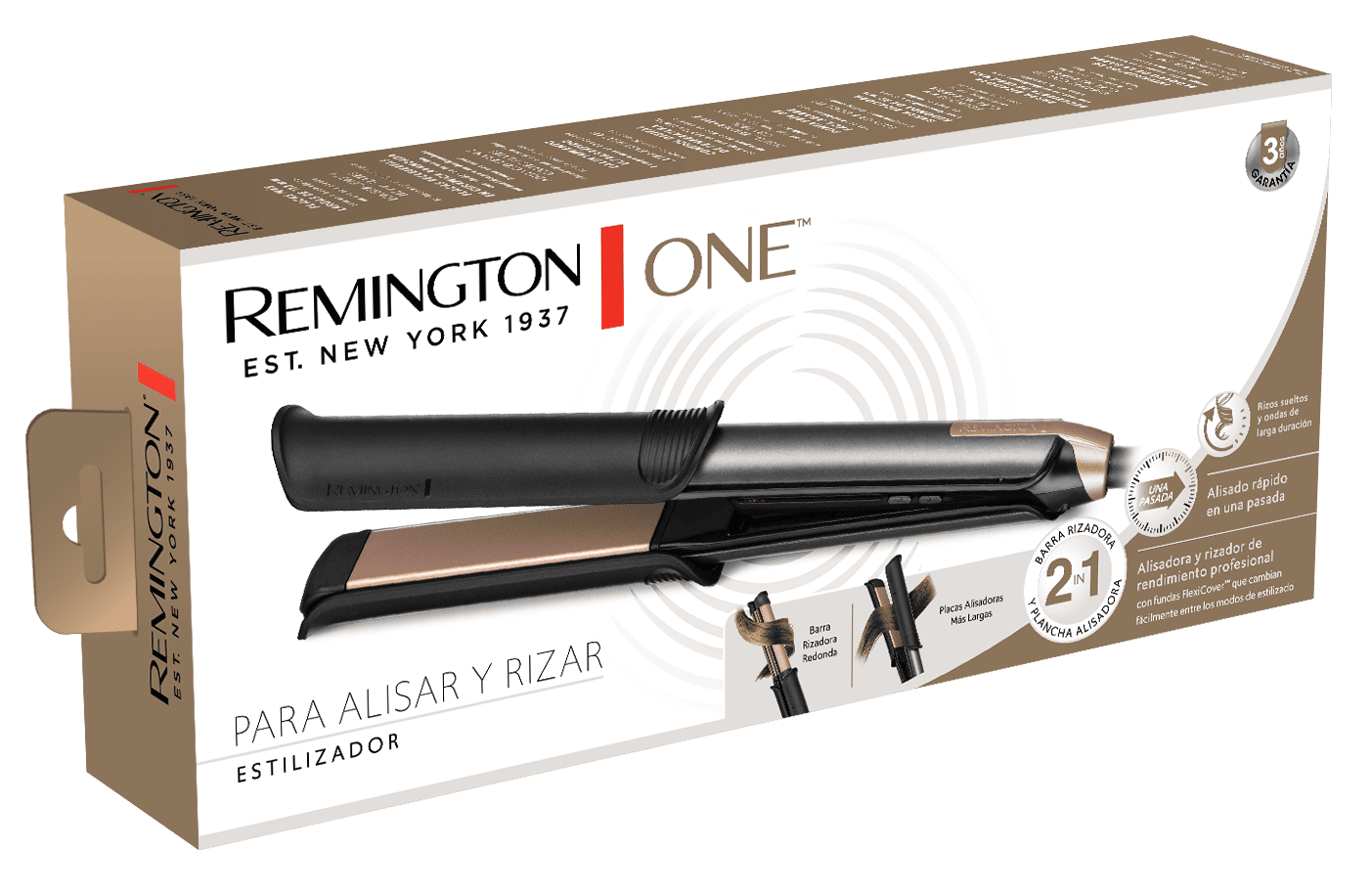 El estilizador 2 en 1 Remington ONE™ te ofrece la comodidad de dos potentes herramientas en una. Podrás crear diferentes estilos, tanto lisos como rizados, con facilidad y eficiencia, logrando resultados impecables en cada uso. ¡Todo lo que necesitas para un look perfecto, en un solo dispositivo!