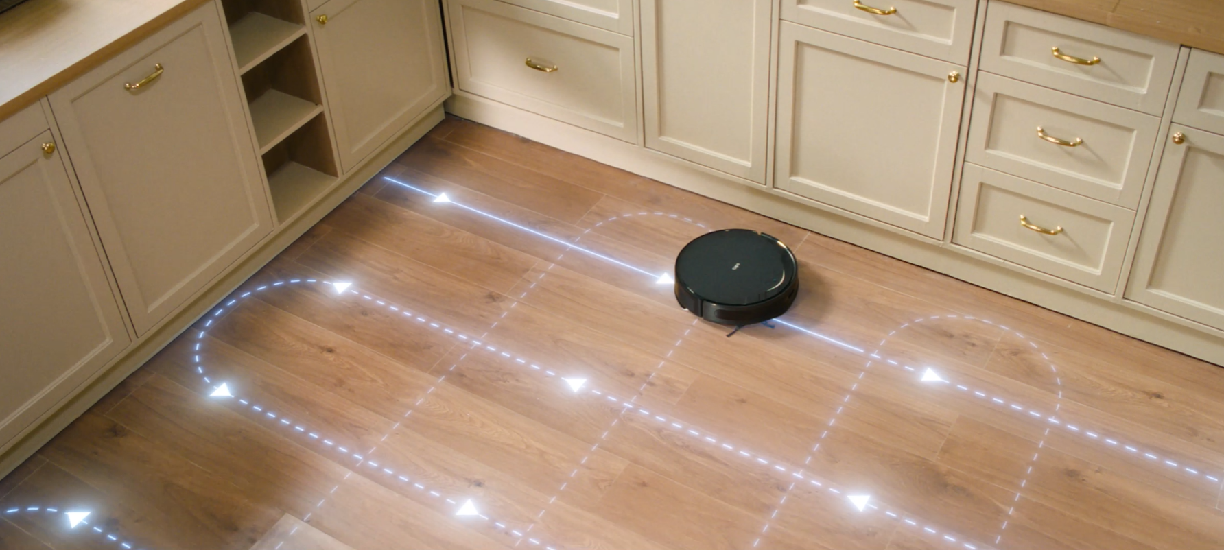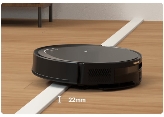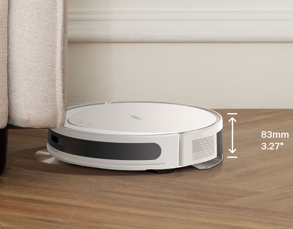 Con sólo 83 mm de altura, el robot se desplaza sin esfuerzo por debajo de sofás y camas, llegando a todos los rincones de la casa.