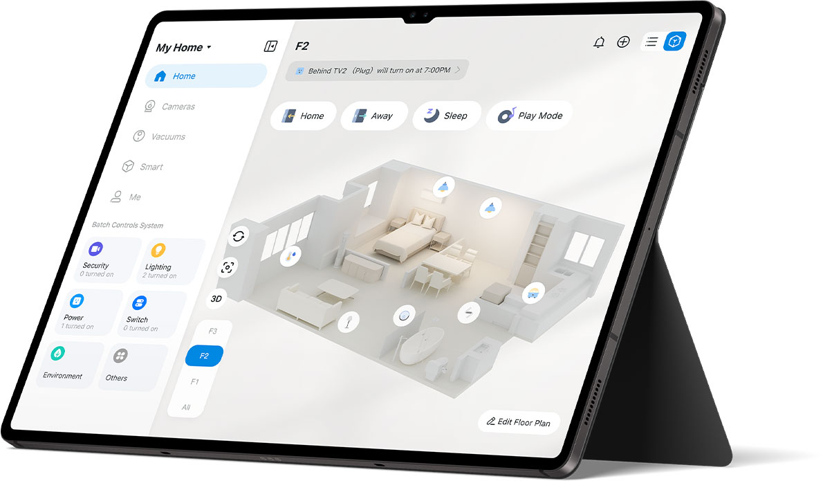 Crea y visualiza un esquema en 3D de las habitaciones y los muebles de tu casa de un vistazo. Los algoritmos inteligentes permiten controlar los productos Tapo en toda la casa con un solo toque.
