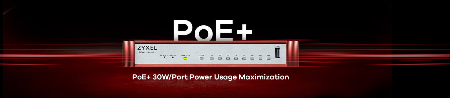 El USG FLEX H ofrece hasta 2 puertos PoE+ de 30 W integrados*1 para ayudar a reducir la complejidad simplificando las instalaciones y reduciendo los costes de instalación al permitirle alimentar dispositivos como routers 5G, WiFi de última generación o aparatos como teléfonos VoIP directamente desde el propio USG FLEX H.