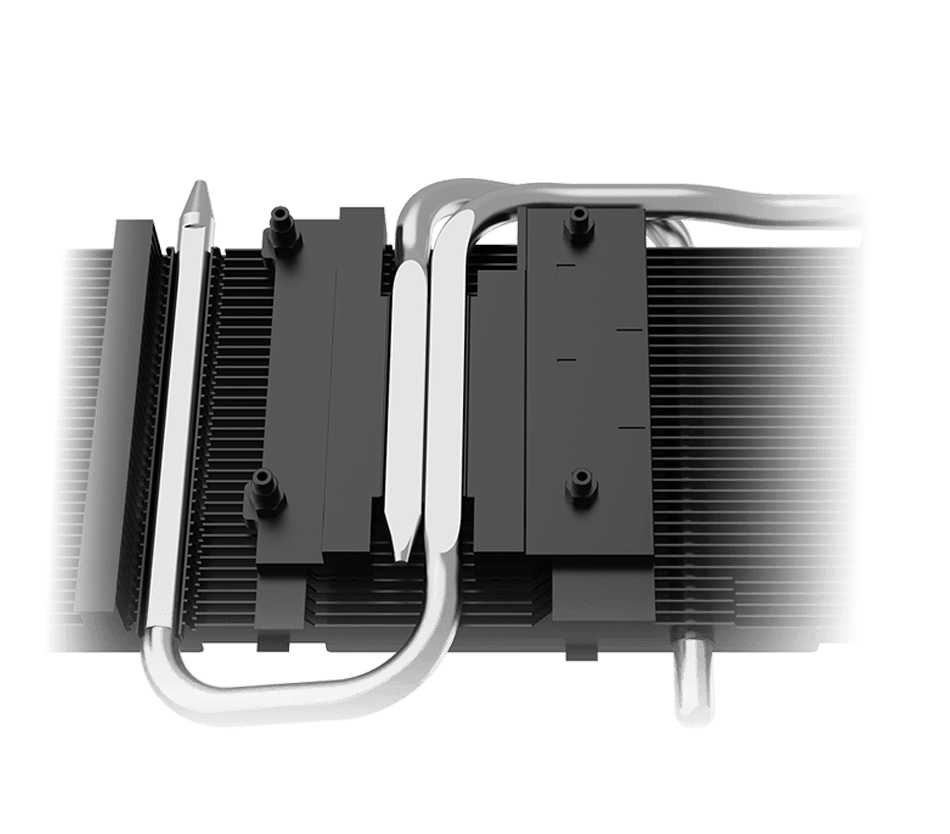 Diseñados para una transferencia térmica eficiente, los heat pipes extraen el calor de la GPU y mejoran el rendimiento general del sistema de enfriamiento.