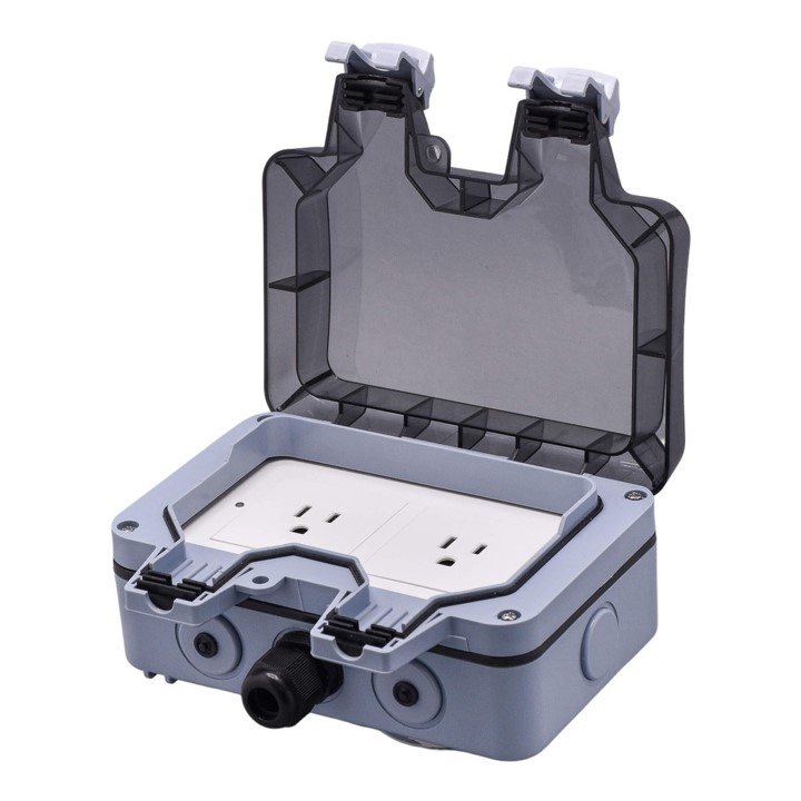Multitoma inteligente para exteriores de 2 salidas de voltaje con polo a tierra para empotrar:Cubierta protectora para cada salida, Diseño robusto y resistente, Controle de forma remota, programe tiempos de encendido o apagado, Automatización con otros dispositivos, Aplicación compatible con dispositivos IOS y Android, Compatible con asistentes de voz, Para uso interior/Exterior